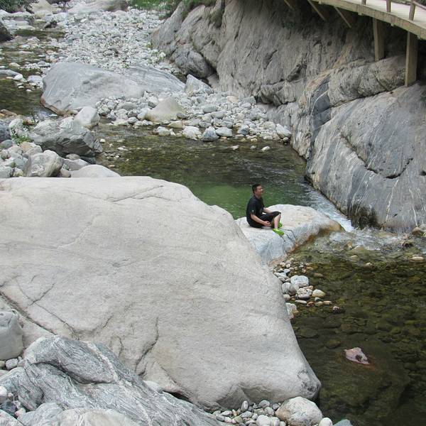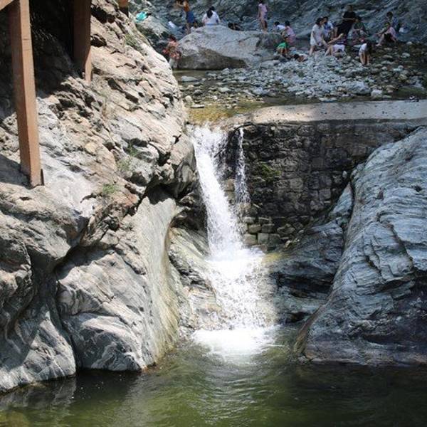 到达酒店放好行李之后,打算去仙峪小景区我们问了店老板,她告诉门口坐去桃园的车,我们就在门口等了会儿坐车去了。其实巴士把我们放下的地方离仙峪景区还有大概一两公里的距离,天气很热走起来特别累,建议再去的同学还是应该去玉泉院门口坐免费的巴士,可以送到景区门口。