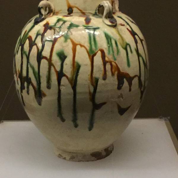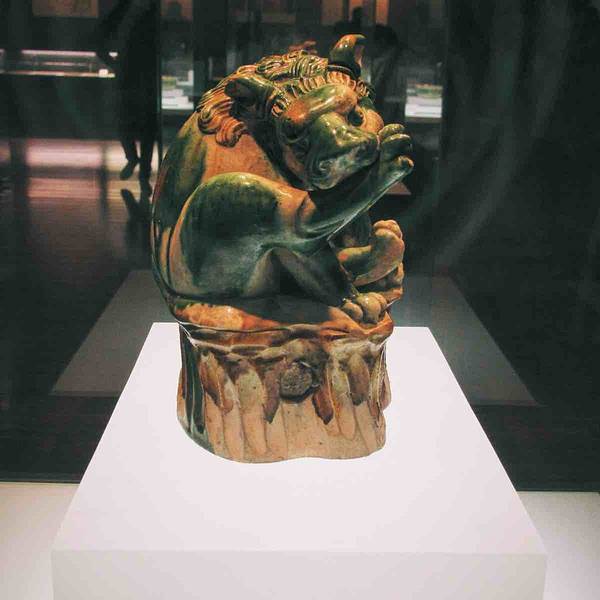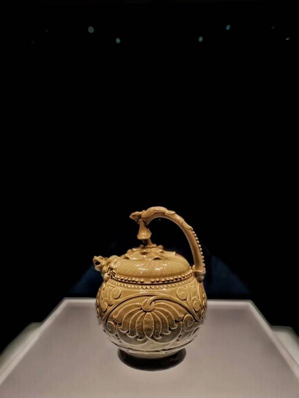 唐三彩载乐骆驼俑-唐青瓷提梁倒灌壶-五代黑釉油滴碗-宋
