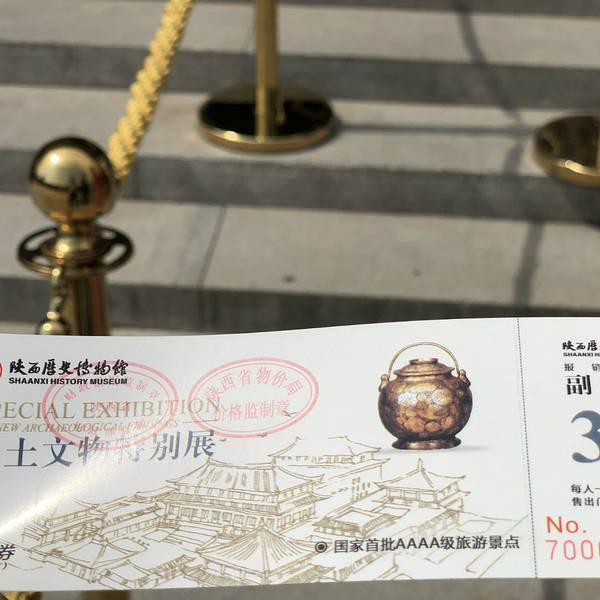 凭身份证免费领票,记得要早去,因为每天免费票有限,还有排队的时候不要排错,看着那个队伍人少就过去排,那就是20元一张门票。但买了这个20元里面...这里提醒大家一下,陕西历史博物馆和西安博物馆不是一个地方。