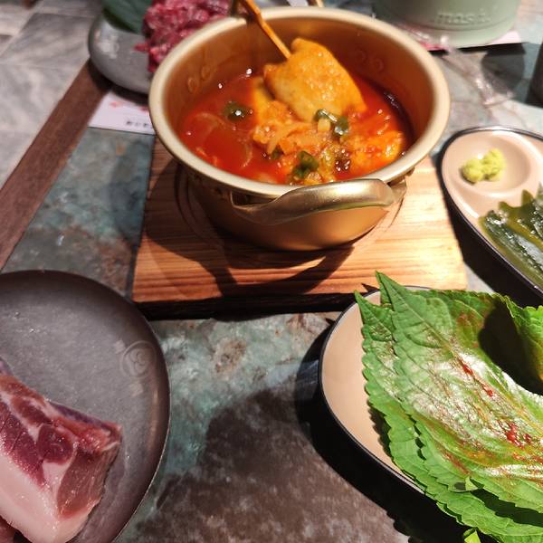 福来里街位置,也就是cgv电影院旁边的区域,之前这个区域没开放,现在开了好多饭店啊。这家韩料店刚开业的,周末来的,来晚的话还得等位置。服务员好像业务还不太熟练,吃饭感觉好多服务员围着,可能有的是在学习...