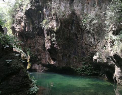云台山泉瀑峡水帘瀑:进入云台山风景名胜区泉瀑峡,沿峡谷一路前行约一公里,在峡谷内电瓶车停车点附...云台山泉瀑峡水帘瀑:进入云台山风景名胜区泉瀑峡,沿峡谷一路前行约一公里,在峡谷内电瓶车停车点附近,有一股清泉从山间喷出,垂直落下,形成水帘瀑,瀑布虽不大,但给人以清爽之感。