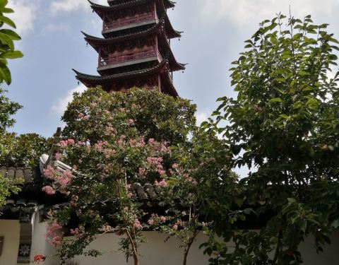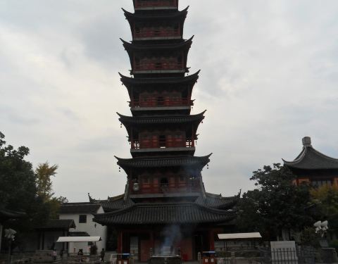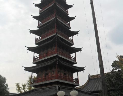 千灯古镇的标志性建筑秦峰塔,位于延福禅寺内,是全国重点文物保护单位,与延福禅寺都始建于公元503年,在千灯镇开阔一点的地方都能看到它的身影。