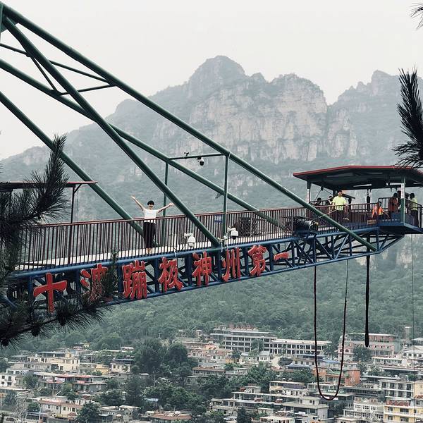 玩蹦极的人很多,太害怕没敢玩