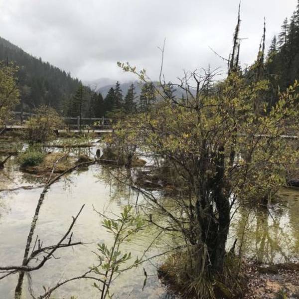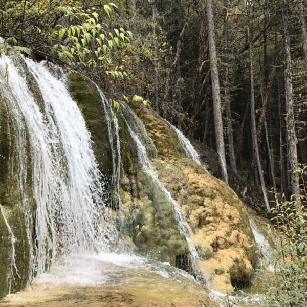 独特的钙化景观非常有特色,沟内的许多彩池在阳光照射下,流光溢彩,煞是好看,这里也有彩林带,层林...