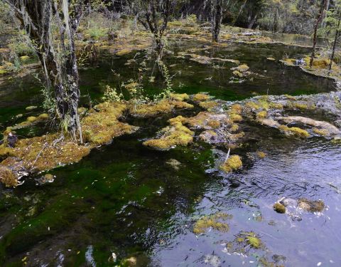 #圣洁冰川 多彩黑水#黑水卡龙沟,独特的钙化景观非常有特色,沟内的许多彩池在阳光照射下,流光溢彩,煞是好看,这里也有彩林带,层林尽染,各种植被,层次丰富,苔藓密密匝匝,沟内空气极其清新,是洗肺,养身好...
