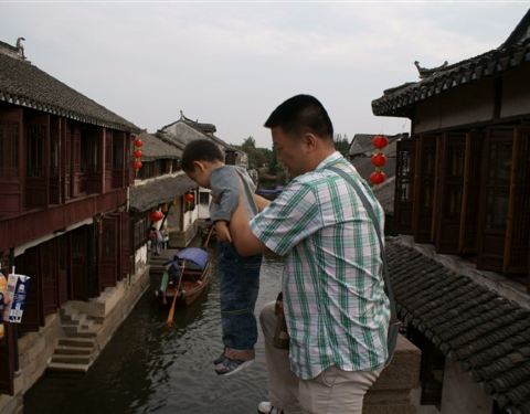 桥太小了,我差点没被挤下去。说实话实在不知这座桥有何建筑美学上的大妙之处,因为这里桥太多了,周庄原名贞丰里,桥与庄同名,显现此桥代言人的地位。细看看,倒是和旁边的迷楼相得益彰。