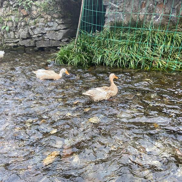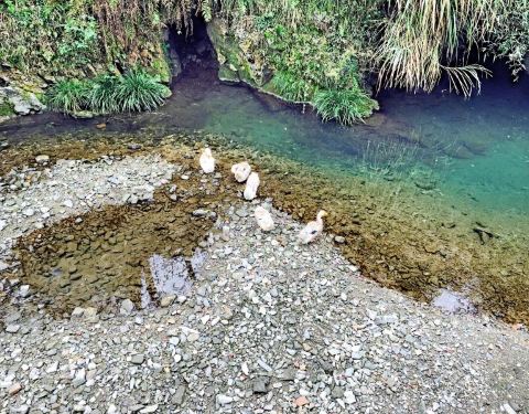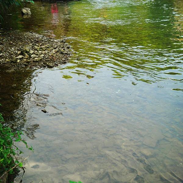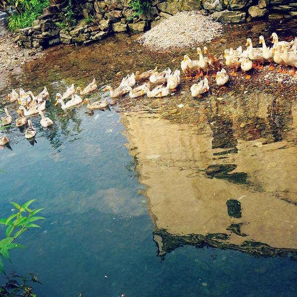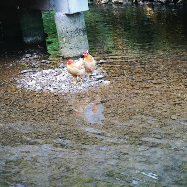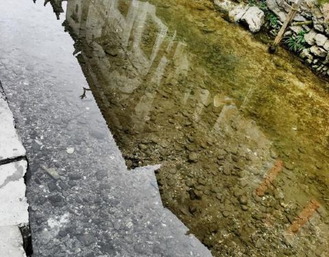 往里走还见到2只肥肥的母鸡站在小溪里不动,不知道是否是自己游下去的哈。水中倒影,游玩时间——