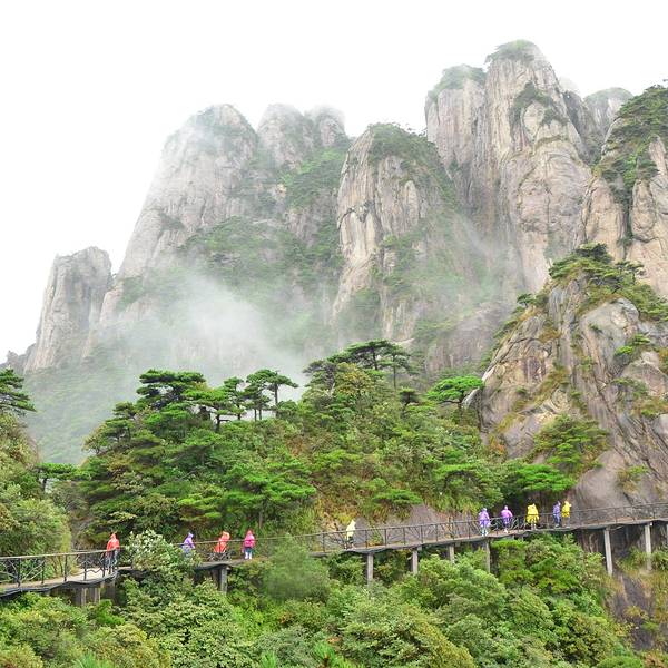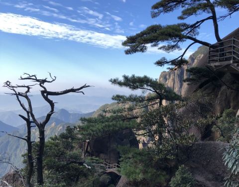 栈道很长,风景尽收眼底。从栈道遥望,天山云海、烟雾缭绕。真是鬼斧神工,天具匠心栈道很长,风景尽收眼底。真是鬼斧神工,天具匠心!从栈道遥望,天山云海、烟雾缭绕。只可惜开始没拍照片,后来才拿到手机拍了几张。