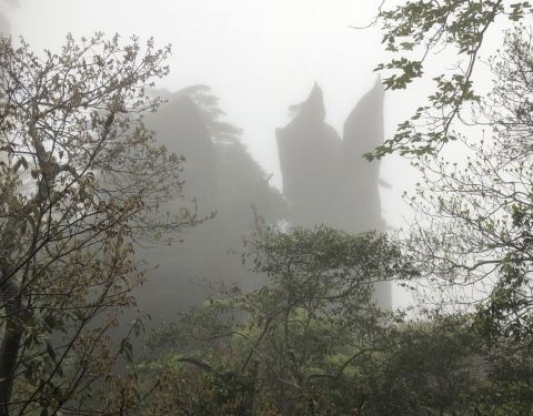 景点我也是没看到什么,都是雾蒙蒙的,有一种在仙境的感觉,运气不太好,下次找个好天气再来从南景区索道过来,走的大环线,从巨蟒出山那边走过来就到阳光海岸了。 景点我也是没看到什么,都是雾蒙蒙的,有一种在仙境的感觉,运气不太好,下次找个好天气再来 。 这段路比较好走,都是平路,没有什么上下坡