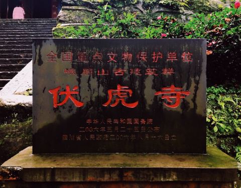 实用 ...在寺庙中评茶学佛养心,外面苍天天的古楠木,雾气缭绕的群山,让八百多年的古老寺院特别的宁静而深沉伏虎寺是峨眉山的其中一个景点,也是峨眉山里最大的一座寺庙。我们一行人去是路途中遇到几个去伏虎寺还愿的几个香客,说寺庙在当地十分有名气,也非常灵验,于是乎我们就慕名而去了。当地人告诉我们还有个民间传...伏虎寺是峨眉山的其中一个景点,也是峨眉山里最大的一座寺庙。我们一行人去是路途中遇到几个去伏虎寺还愿的几个香客,说寺庙在当地十分有名气,也非常灵验,于是乎我们就慕名而去了。当地人告诉我们还有个民间传说,相传村庄里有个孩子,天生眼疾,于是被父母遗弃。这时出现一只猛虎,叼走了这个孩子,猛虎在寺庙内爬挖井水,治好了孩子的眼疾,从此老虎便跟着这孩子不离不弃,这孩子也成了高僧四处传教。这间寺庙故名伏虎寺。【门票】门票:6元/人。性价比非常高。18点以后去无需买票。【交通】公交车:火车站处坐1路车可直达峨眉山景区,票价1.5元。到峨眉山处问问工作人员很容易找到。 大巴:成都市新南门客运站有直达的大巴车,票价45元左右。出发时间为7:20-19:20。自驾:道路很平坦,路途中没有过多崎岖的山路,新手司机也可以开车过去。【住宿及饮食】伏虎寺是一个尼姑庙,里面有给香客们提供住宿,标价价格为80元/人,需要自带洗漱用品。其他的设施也都相对简朴,毕竟是寺庙而且价格也很便宜。饮食方面去的大多数人都会选择在那吃斋饭,味道还不错,无限量让你吃到饱,有馒头,不定期有面食,刚好我们碰到了。价格为10元/人。如果不想在寺庙内住宿,可以选择在峨眉山周边,毕竟峨眉山景点很多,只有玩一天的话,不可能玩完哦。周边酒店价格也不贵,很多都是民宿,但是设施上比寺庙更加完善些。【伏虎寺】伏虎寺给我最大影响就是非常干净,干净的甚至于找不到一片落叶。正符合它的名字,清朝康熙帝给它题字为离垢园,就是缘于它的一尘不染。从山下沿石梯上去,便会看见伏虎寺(虎字根本认不出来)。寺庙很大,但是整个寺庙掩映在丛林中,灰色的瓦片,质朴的外墙,虽然来往人群很多,但是好像都被寺庙内宁静悠然的氛围感染,纷纷收齐了以往的喧哗之声。更加为这座寺庙增加了几分神秘的气息。最有特色的是在罗活堂,里面的五百罗汉各个姿态各异活灵活现,而每个人都会有跟自己命运相对应的罗汉,可以根据提示自己去找。找到之后他便是你的守护罗汉,可得好好拜拜。我们选择的是留宿在寺庙之中,运气很好,去的时候乌云密布,傍晚竟然看到了晚霞落日。夜晚的伏虎寺静谧美好,没有WiFi,没有城市的喧嚣。早上听着徐徐山风送来的晨钟暮鼓声,坐在寺庙中评茶学佛养心,外面苍天天的古楠木,雾气缭绕的群山,让八百多年的古老寺院特别的宁静而深沉!这应该是很多人所向往的生活吧。峨眉山附近有个养身休闲会所的,下山后可以去沐浴一番。希望有机会再去!