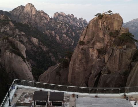到达黄山的第一站就来到了玉屏楼,玉屏楼是黄山上面比较大的一座平台和休息的地方,在这里可以看到迎...到达黄山的第一站就来到了玉屏楼,玉屏楼是黄山上面比较大的一座平台和休息的地方,在这里可以看到迎客松,卧佛和其他的一些景点。