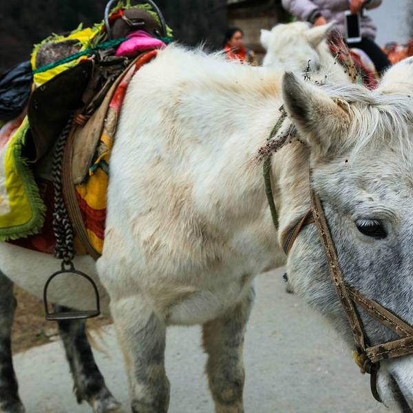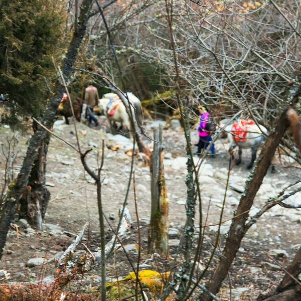 很温顺很高大乘着马儿一开始就经过了这个寺庙之后到了栈道处需要自己走10分钟再乘马,因为马儿走的不是这条路马走的是栈道下面的这条路有些艰难啊经过这个河滩后我又坐上了马这一路特别难走又很颠簸
