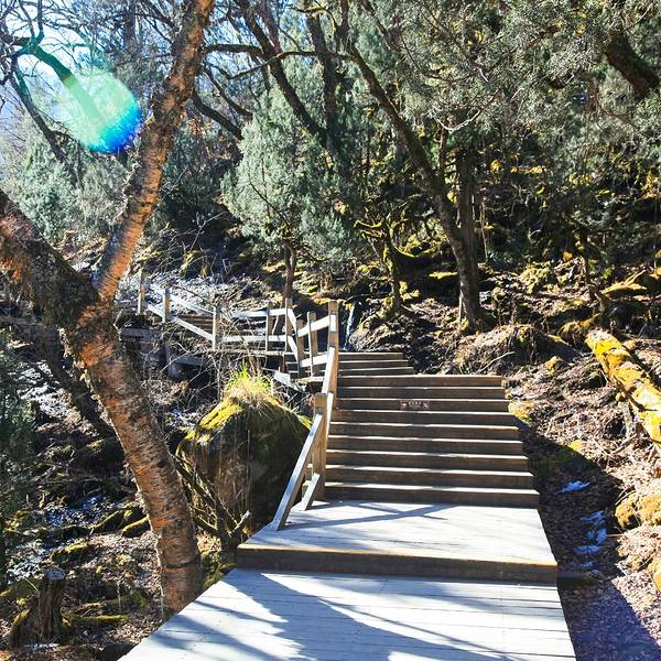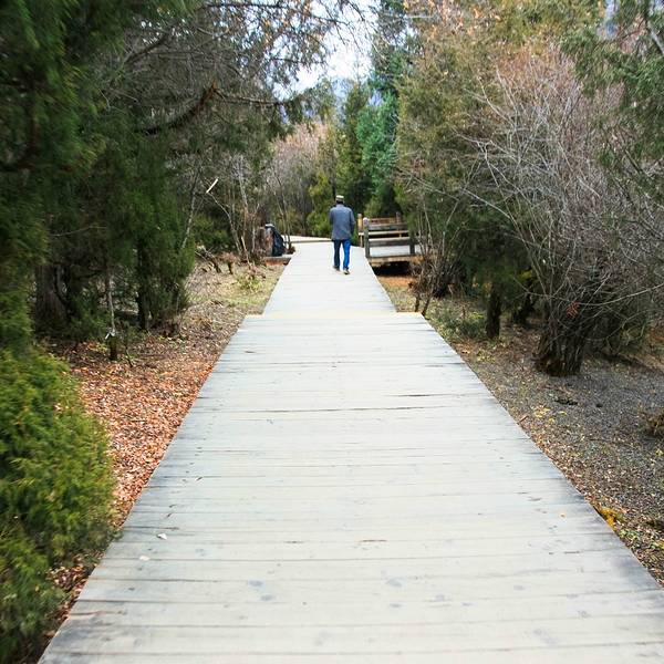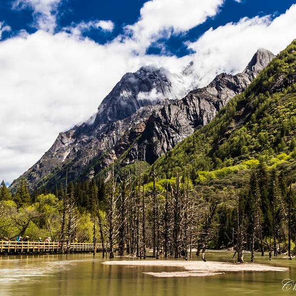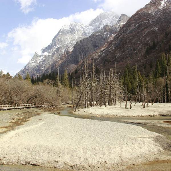 第三天我们俩选择徒步,打算探秘 四姑娘山 景区最后一个景点——长坪沟。购买了门票之后,乘坐游览车送至景区入口。车程在15分钟左右,如果自己徒步从售票点走到景区入口,至少需要半个小时,因此为了把时间放在景区内部,节约时间,选择游览车是比较好的选择。全长29公里的长坪沟大致可分为3个部分:第一部分,适合普通游客的栈道路线,瀑布、深谷、枯树滩、风景优美;第二部分,栈道结束后至木骡子段的徒步路线,穿越森林、草地,绕到幺妹峰背后的大草甸,这一段路野趣横生,如果进沟较早、体力较好的可以比较轻松的当天徒步往返;第三部分,木骡子后至长坪沟沟尾,这一段没有任何人公开发的痕迹,全程沼泽、雪山、溪谷,是户外爱好者的天堂。长坪沟的坡度起伏较缓,长度适中,适合徒步或骑马游览。