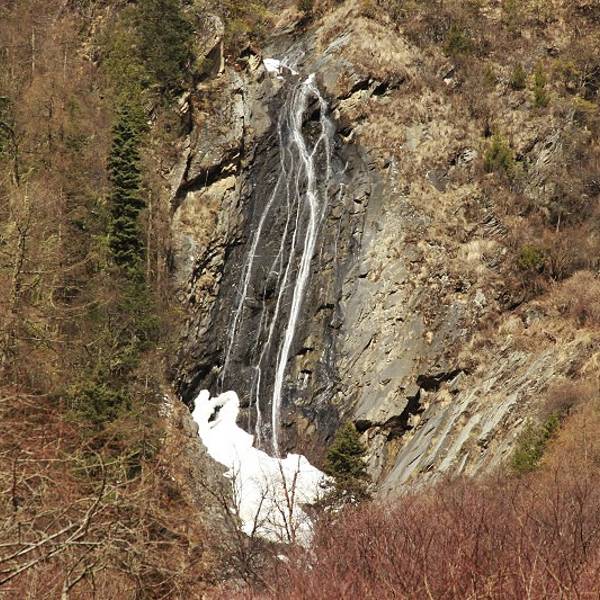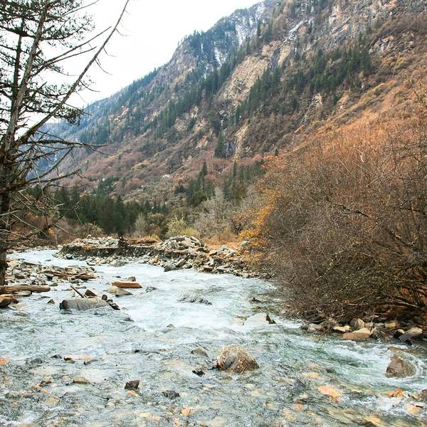 水打坝--鸡冠石:1小时枯树滩,酷似的沙棘、杂木留下一片枯桩置于河滩,故称“枯树滩”。因为地势相对开阔,抬眼可见洁白的雪峰,像一个群山怀抱中的小小摇篮。从远山雪峰上融化而来的泉水清澈透底,味道甘甜,十分怡人。长坪沟沙棘林,由于长坪沟的森林资源保护完好,没有像双桥沟那样遭到砍伐,因而在这里保存了沙棘树生长的原始状态。受周围高大乔木的影响,呈低矮灌木形态的沙棘树多了一些阴柔,树形清秀而惹人喜爱。虫虫脚瀑布,整条瀑布自上而下分成许多小支,很像毛毛虫细细的小脚,所以当地人叫它虫虫脚瀑布。穿梭在密林之中,哗哗的声音不绝于耳,特别是秋季伴着灿若星辰的彩林,虫虫脚瀑布最是精彩。虫虫脚瀑布在栈道上方,需要向上攀登10分钟左右,往返接近半小时,想要深入长坪沟的游客,可以先往里走,回程如果有时间再参观。这里海拔3700米,对于初到高原的游客来说比较辛苦,可以在瀑布下方的观景台向上仰望瀑布。如果只是到栈道尽头就返回的普通游客建议登高一望。栈道结束后就只有土路、马道,这里原来有两个海子,后来因为河流改道,两个海子就变成了如今的沼泽地,被称为上干海子和下干海子。