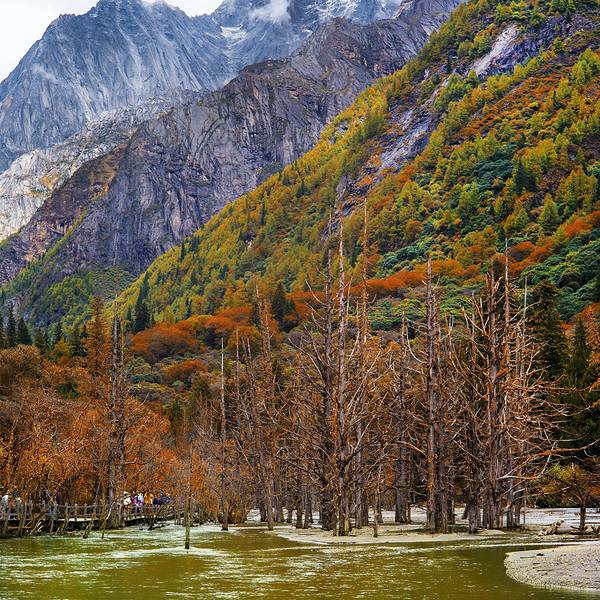 如果只是到栈道尽头就返回的普通游客建议登高一望。长坪沟的坡度起伏较缓,长度适中,适合徒步或骑马游览在第二天结束了海子沟行程后,我们和一批同行的小伙伴一一告别,最后留下了我和游走两个人继续探寻 四姑娘山 的美景。