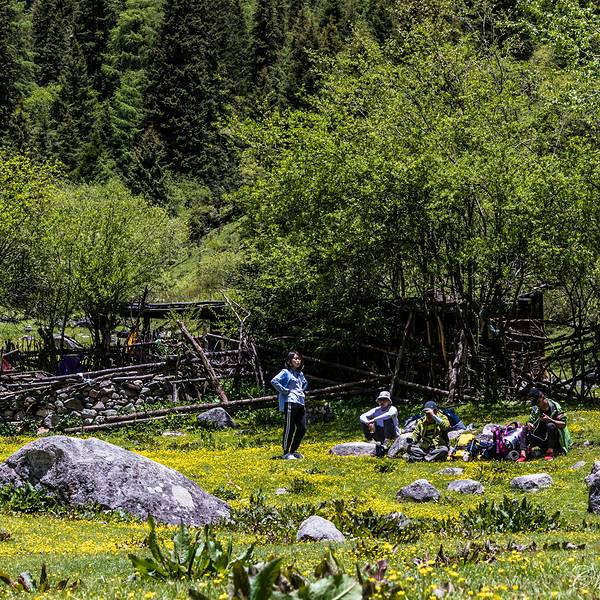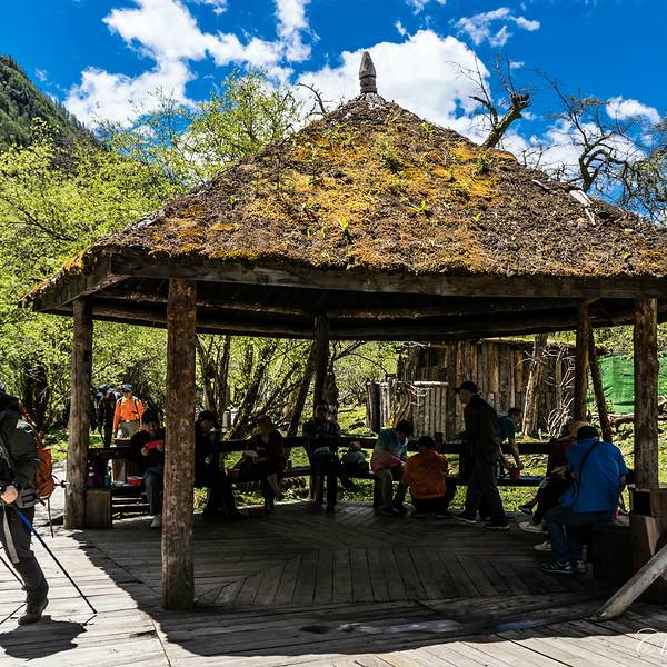 这里有一处小杂货店,是进入长坪沟的第一个商店,提供热水、方便面等。整条沟内只有两个商店,第二个要到木骡子才有了。这里也被称为大本营,大多数人徒步到此之后就选择休息和歇脚,在此之前一路几乎也都是平地,没有太高低起伏的路面,因此走起来也轻松。从景区入口到这里大约十公里,来回慢走将近6个小时。