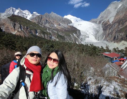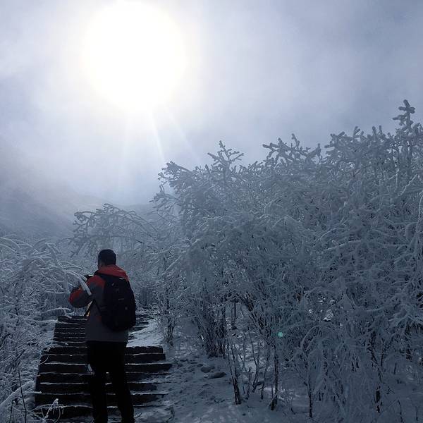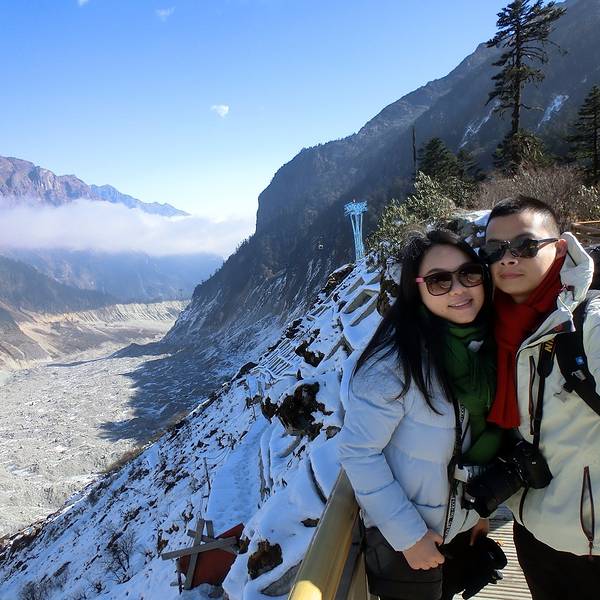 非常震撼!运气非常不错!天气非常好!落差1100米的大冰瀑布,还有后面7556米贡嘎主峰运气非常不错!天气非常好!落差1100米的大冰瀑布,还有后面7556米贡嘎主峰!非常震撼!由于还是冬季的缘故,积雪比平时更加深厚,怪不得说冬季是最适合游览海螺沟的季节,一个是晴天概率高,二是积雪还没化,银...运气非常不错!天气非常好!落差1100米的大冰瀑布,还有后面7556米贡嘎主峰!非常震撼!由于还是冬季的缘故,积雪比平时更加深厚,怪不得说冬季是最适合游览海螺沟的季节,一个是晴天概率高,二是积雪还没化,银装素裹的冰雪世界造就一幅震撼的画面! 因为海拔超过3500米,就有机会高原反应了,这一次可能因为在四号营地游览要走的地方比较多,两人走了一个多小时,都不同程度出现头疼和气喘,要坐下休息一下才行。 建议第一次上高山或者肺活量比较少的朋友,在山下提前半小时泡红景天水喝,或者买一瓶小氧气带上来,以防万一。如果没有准备,走两步停下来休息一下,其实问题都不大,毕竟海拔不是真的很高。 展开