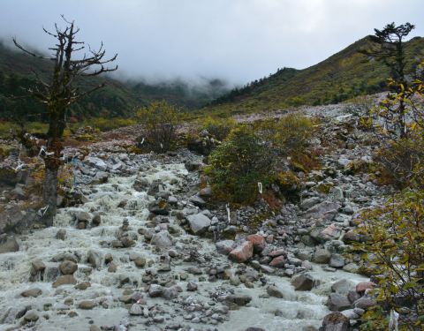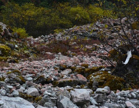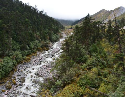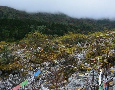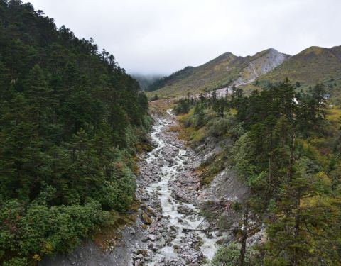 回到三号营地免费坐景区大巴回程,我们选择在草海子站下,然后穿过冰川雨林徒步走到二号营地。