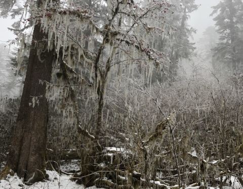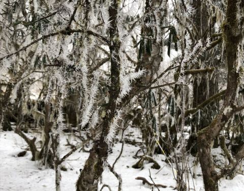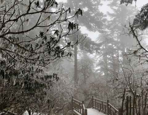 作为生长在亚热带的孩子,冬天也树木参天的雨林见得不少,但是加上白雪点缀真的是很少见,漫步在这个特别的世外桃源,别有一番滋味。