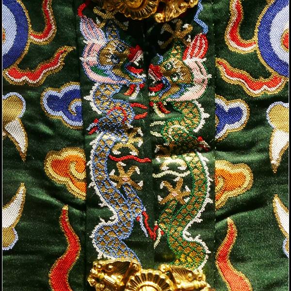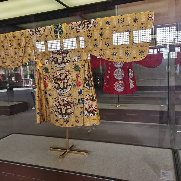 🌟进门右侧的石碑记录了明成祖朱棣的一生和功绩 之后进大殿 大殿里面 正门是朱棣的全身像 四周目前是 服饰展 大殿的柱子都是金丝楠木
