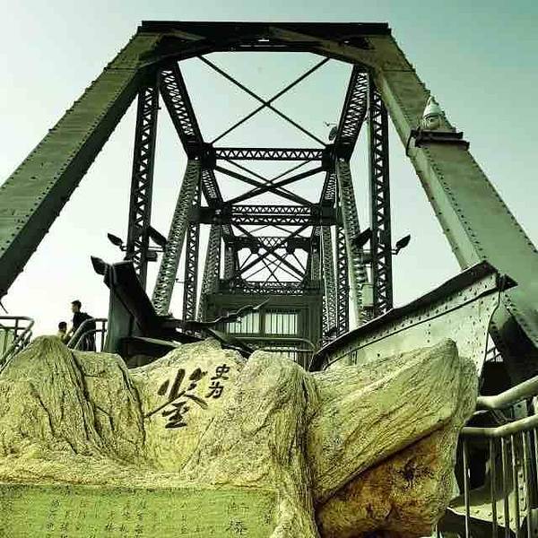 鸭绿江断桥是鸭绿江上第一桥,一九零九年五月动工,一九一一年十月竣工,由当时殖民机构-----日本驻朝总督府铁道所建。始为铁路桥,长九百四十四点二米,宽十一米,共十二孔。从中方数第四孔为开闭梁,以四号墩为周,可旋转九十度,便于过往船只航行。一九四三年四月,日本侵略者在此桥上游不足百米处建成第二座铁路大桥(即今日中朝友谊桥),遂将此桥改为公路桥。抗美援朝战争期间,被美军飞机炸断,中方一侧所剩四孔残桥保留至今,习惯称“断桥”。现为省级文物保护单位和全国爱国主义教育示范基地。
