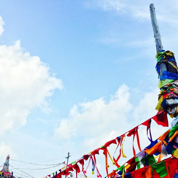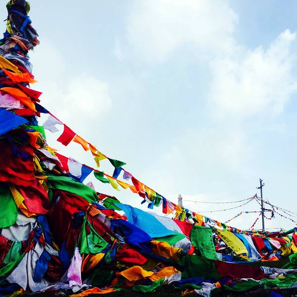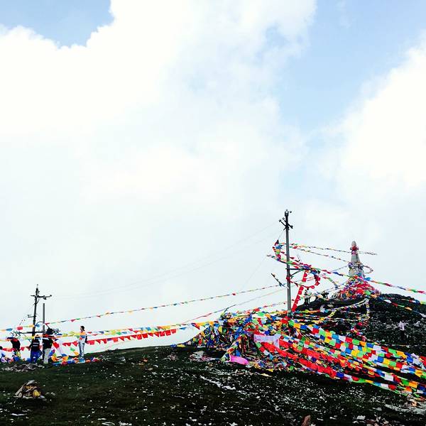 顶着小雨一路爬到了西台顶,真是累的不要不要的,不过看到经幡我的心情一下就美丽了,左拍拍右拍拍的西台 —“月挂峰颠,俨然若悬”,名挂月风,海拔2773米,上有法雷寺供狮子吼文殊。
