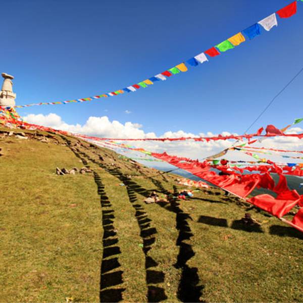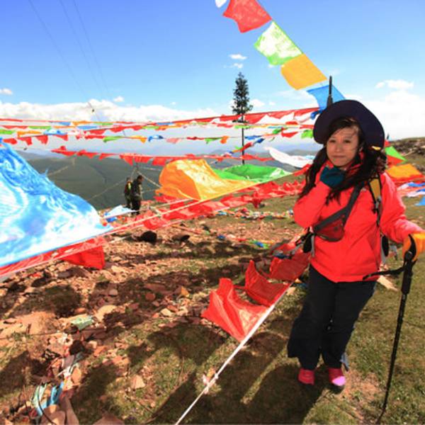 西台还是挺漂亮的。到了西台,我们车里的人全下去挂经幡合影留念去了。这是山里姑子们的屋子到了西台,我们车里的人全下去挂经幡合影留念去了