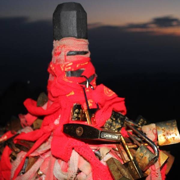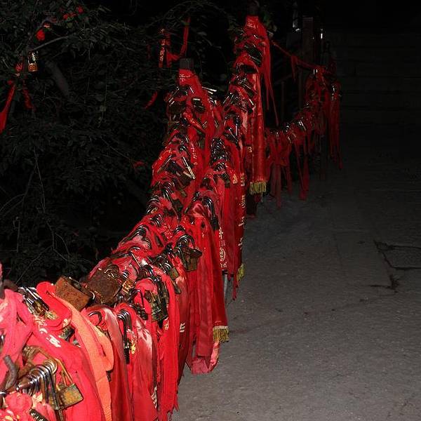 我是从后来游人口中得知,华山原来还是爱情山,我们常说的洞房一词便源于华山。据说如今每年都有50万左右的夫妻结伴登华山,先到素有天下第一庙之称的西岳庙进香,祭拜华山神,然后上山挂一枚同心锁,祈福爱情生活美满。后来想想不管了我就当做祈平安吧。其实也就是求个心安理得吧。