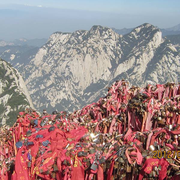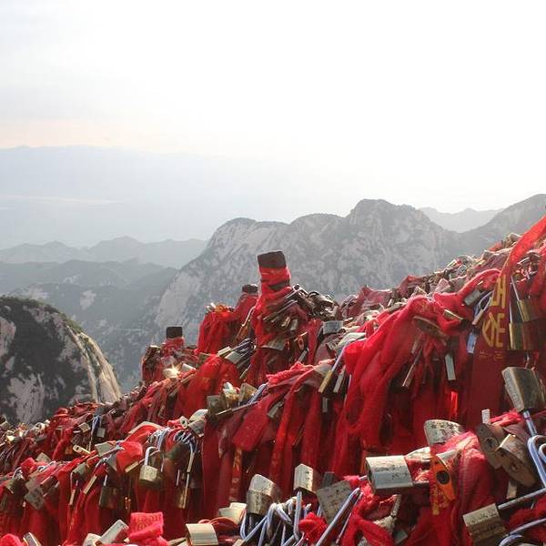 实用 这里的门票是包含在景区180元的大门票中的。但购买锁的费用是另付的金锁关据说曾经是古代的军事要塞,但现在这里已经成为了华山景区祈愿、祝福的好地方。从华山火车站乘坐公交车到达风景区后,可以先到五云峰,再从五云峰向东西南北四个方向出发。中间必然会经过金锁关。还未到达...金锁关据说曾经是古代的军事要塞,但现在这里已经成为了华山景区祈愿、祝福的好地方。从华山火车站乘坐公交车到达风景区后,可以先到五云峰,再从五云峰向东西南北四个方向出发。中间必然会经过金锁关。还未到达,我们就已经远远地看到了关隘,因为关前挂满了大大小小、形态各异的平安锁和情侣锁,锁边还挂了醒目的大红绸。这里的门票是包含在景区180元的大门票中的。但购买锁的费用是另付的。一般是小的10元一个,大的20元一把,可以让工作人员在上面刻上想祝福的人和话语,然后依据心愿的不同,挂在家庭区、情侣区等不同区域,旁边会有工作人员告知的。我们一路看过去,除了满满的感动,还发现了一个有趣的现象,基本上我们所看到的锁都非常新,没有生锈的痕迹,一问才知道,原来山上会定期进行清理,以免影响锁链重量。 展开 2016-05-28 10:48