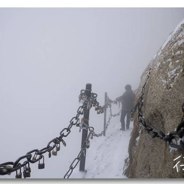 现在过长空栈道需要三十元的保护带费用,没尝 试过,也不敢尝试在这边已过了金锁关,一般的游客如果要当天回去的话基本上到了金锁 关就回去了,我估计到华山游客能有十分之一登顶就不错了。原本我们也打算打道回府了,因为时间上有点不允许了。这时碰到几个湖南的游客,说他们...在这边已过了金锁关,一般的游客如果要当天回去的话基本上到了金锁 关就回去了,我估计到华山游客能有十分之一登顶就不错了。原本我们也打算打道回府了,因为时间上有点不允许了。这时碰到几个湖南的游客,说他们是昨天就来了,打算今天登顶然后回去,要不咱们做个伴,如果真的晚的话可以一起坐高铁回西安,对尝试新的交通方式我还是很有兴趣的,所以就一起结伴了。因为从金锁关往上的话,游客就很少了,看看路面的积雪就知道了,很干净,有些地方都没脚印。其实在那个时候咱已经吃不太消了,毕竟从索道上来到山顶差不多有2500米的路,因为都是台阶式的所以消耗体能也厉害的。但另两位女将体能好的很,说要不坚持去峰顶吧,那就坚持吧,至少以后也可以自豪一下,咱也登顶过。