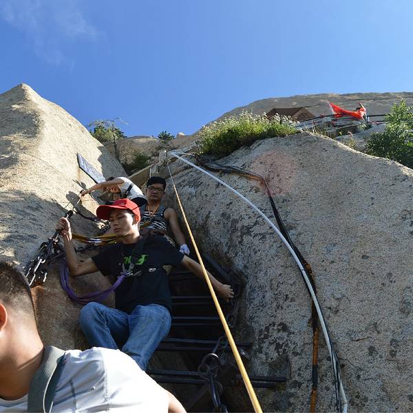 南峰的精髓就是长空栈道,不玩长空栈道就不用上南峰了。爬了一晚的山,已经筋疲力尽,南峰的路不陡,但都是石阶,所以没走几步又停下来歇歇。20分...华山之旅最害怕最期待的地方!明知道自己恐高,但还是要去受虐!