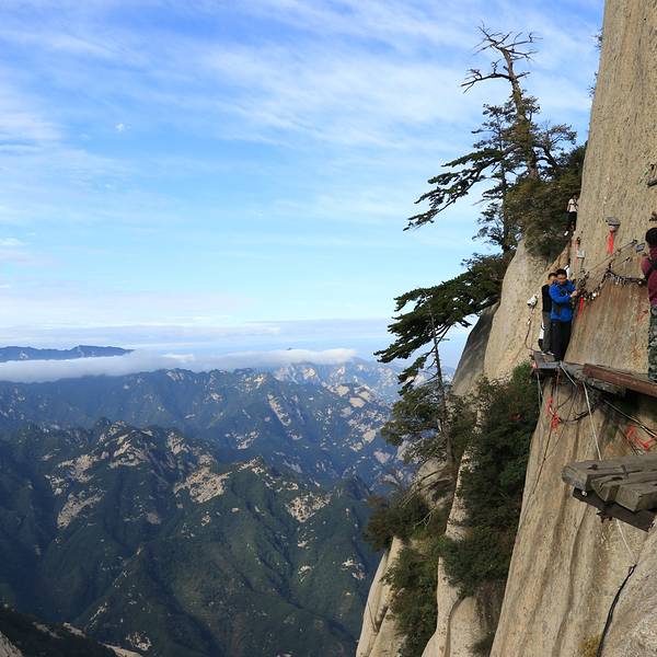 多少年来,有无数游客想征服长空栈道,而到了此...长空栈道位于华山南峰东侧山腰上,是华山派第一代宗师贺志真为远离凡尘而修建于悬崖峭壁上。长空栈道是由木板石钉等搭建而成,修建于悬崖上,被称为华山第一天险。
