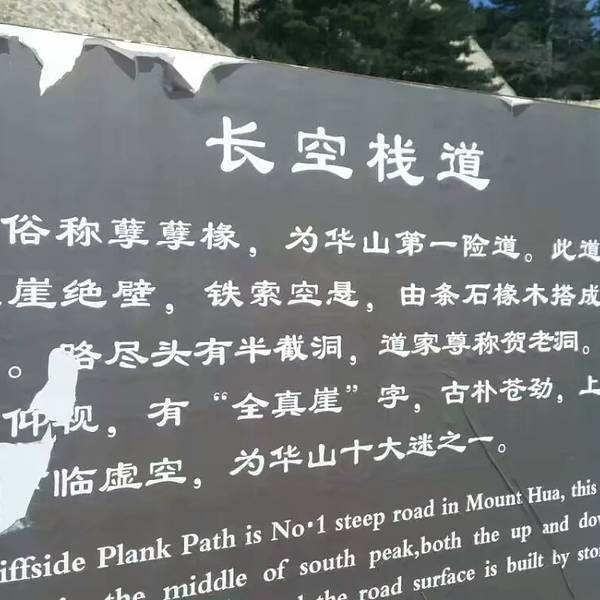 实用 门口有悬崖勒马四个大字,提醒着一些内心不足的人长空栈道是华山三险之一,步行到南峰旁边就可以进入,但是需要30元的门票。门口有悬崖勒马四个大字,提醒着一些内心不足的人。一般去长空栈道需要排队,因为人很多,一次开放20个人的位置,20个人满了就需要等下...长空栈道是华山三险之一,步行到南峰旁边就可以进入,但是需要30元的门票。门口有悬崖勒马四个大字,提醒着一些内心不足的人。一般去长空栈道需要排队,因为人很多,一次开放20个人的位置,20个人满了就需要等下一波人进来以后才能进到长空栈道。进入长空栈道后,需要将你的行李寄存到门口,然后工作人员给你装好设备后,就开始进入了,去长空栈道的话不要走的太急,因为他的过道就是一块非常窄的木板,所以尽量避免和别人相撞起冲突。如果遇到返程的人,锁链必须装到上面,返回的人锁链装到下面,这样通过,不能急。从长空栈道过去,到最里面就是一个思过处,长空栈道就是挑战自我的内心是否强大,所以大家相信自己的内心,一定可以的成功的! 展开