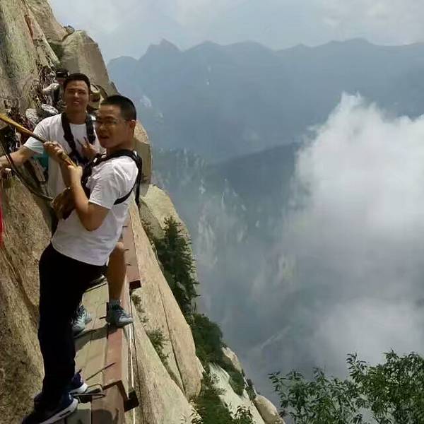 长空栈道是华山最惊险的一部分,可谓是挑战自我的极限长空栈道是华山最惊险的一部分,可谓是挑战自我的极限。直接是硬生生的,治好了我的恐高症,如果你恐高的话,真的可以去试一下,保证药到病除。