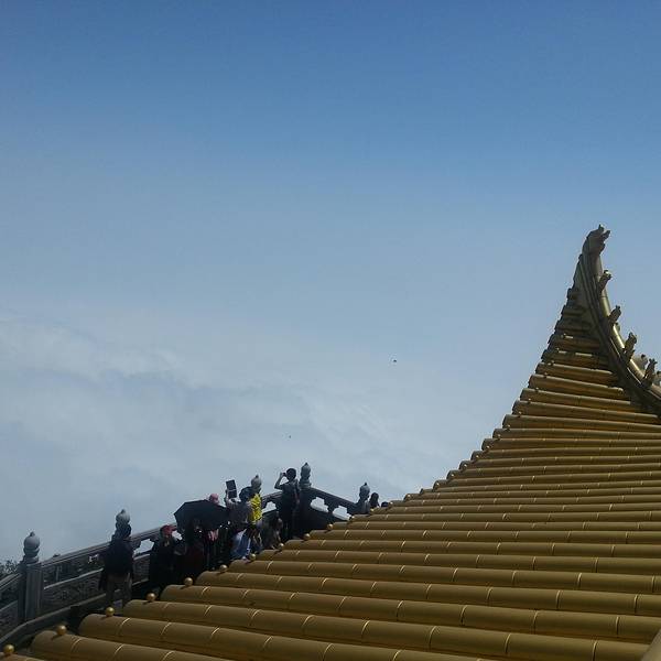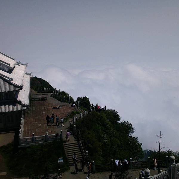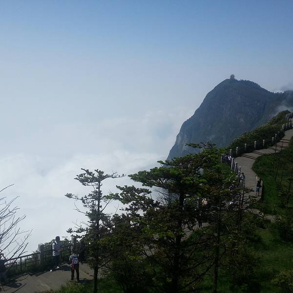 即金顶观景。金顶观景台,是世界上最壮观的观景台,能容纳数千人观景。站在群峰环合的孤峰之上,环顾玉峰素裹的四壁,横陈西天的贡嘎雪山,峨眉山的风骨俊朗、精神逸韵尽收眼底。