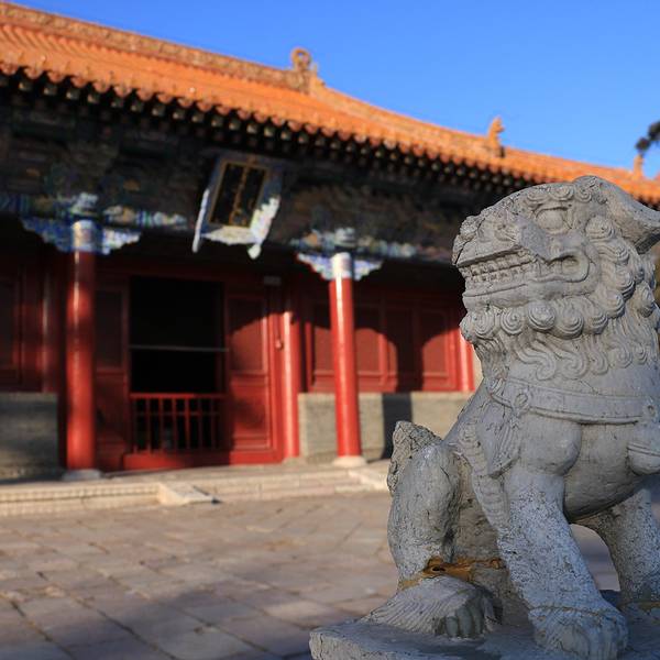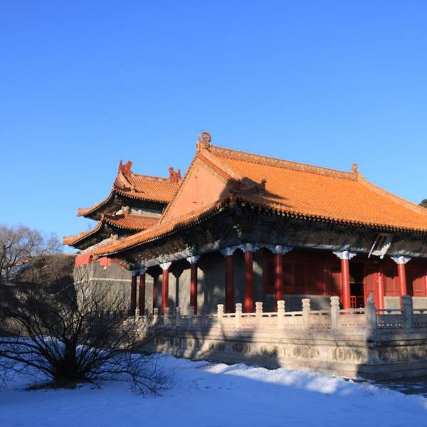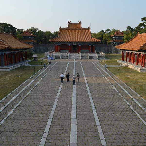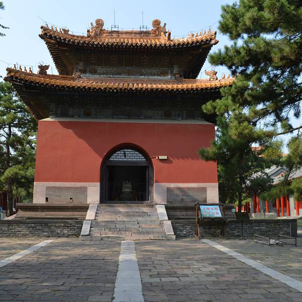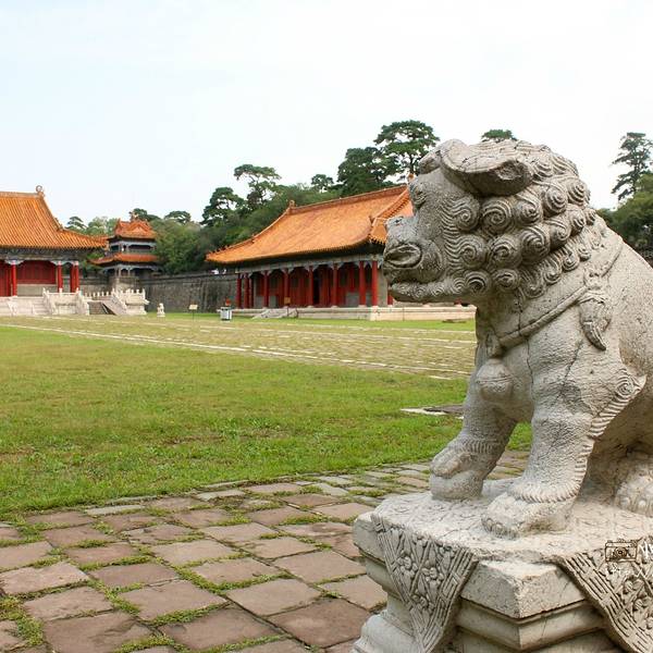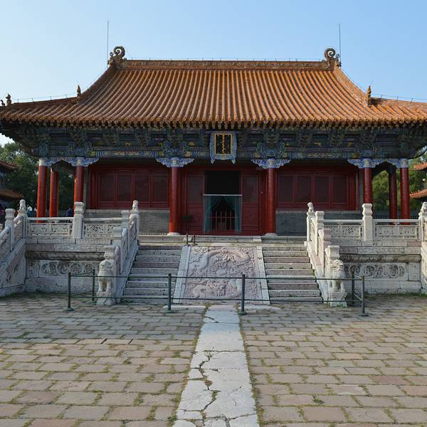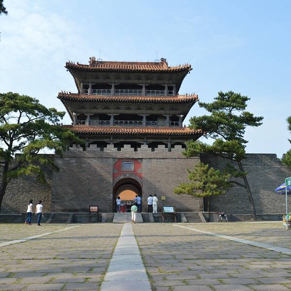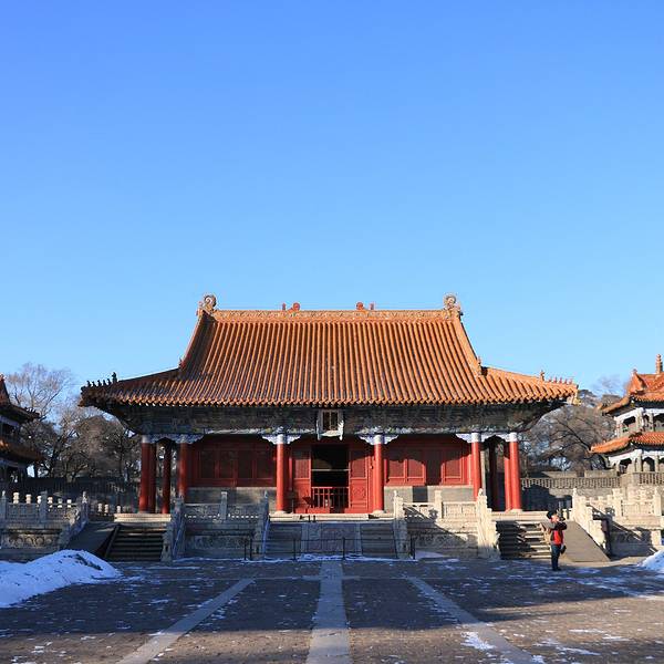 清福陵坐落在沈阳市东北郊,又称东陵,这里是清朝的奠基者太祖努尔哈赤与孝慈高皇后叶赫纳喇氏的陵墓。清福陵始建于1629年,竣工于1651年,它背倚天柱山,草木茂盛,在这里既能感受到皇家陵园的气势,又能享受到清幽的自然环境。 清福陵的正门是正红门,进入后脚下是砖铺的甬路,两旁整齐地排列着华表、驼、马、狮、虎等石雕,在登完108级石台阶(称为108蹬)后,看到的是一座大碑楼,内立"大清福陵神功圣德碑",上面镌刻着康熙帝撰写的碑文,主要是歌颂清太祖创业开国的功德。 碑楼的北面是方城,是清福陵的主体建筑。方城为砖筑长方形城墙,墙上有马道、垛口,墙城的四隅各有一座角楼,这座方城好似既像一座小型宫殿又像一座小型城堡。隆恩殿是方城的正殿,里面供奉着神牌和祭祀,殿前有焚帛亭,两侧有东西配殿,殿后有石柱门、石五供和券门。 方城的北面就是月牙形的宝城,宝城前壁的正中有一座琉璃照壁。宝城的正中是宝顶,系用三合土筑成,下面的地宫埋葬着清太祖努尔哈赤和孝慈皇后叶赫那拉氏。由于整个陵墓依山势而建,你会发现建筑物也随着坡势起伏,显得更加错落有致、高大雄伟。