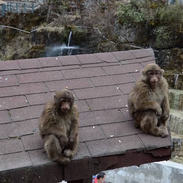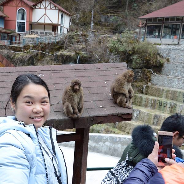 作为一个温泉来说,其实二号营地的温泉是不合格的,储物柜太小,人又多,所有更衣间竟然没有设置座位,地面都是湿漉漉的,空气混浊(也不禁止游客吸烟),环境不太好。而且泉水要么是太热,如果本来就有轻微高反的朋友泡下去很容易头晕胸闷,很不舒服。要么就偏凉,当你起水去另外一个池的时候,身体很快就冷到哆嗦。总而言之,要不是冲着它冰川温泉的名号,其实真的比不上一个正正经经的温泉度假村来得舒服。当然很重要的,如果没有赶上下雪,没有看到周边覆盖白雪的意境,这个冰川温泉也没了卖点,只有远处看到的丝丝雪山作为背景,其实总体来说比较失望。反而最惊喜是在换好衣服后,偶遇了藏酋猴家族,他们完全不怕游客,在房顶跳来跳去,还在互相打闹。有几个还会盯着游客手上的食物虎视眈眈。当然,景区其实也提醒过游客,不要用你的食物去投喂,因为他们自己有自己的食物链,外来的食物有可能让他们不适应导致生病。 展开