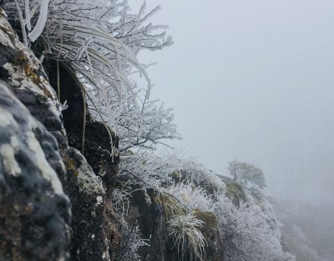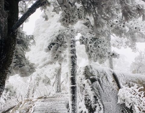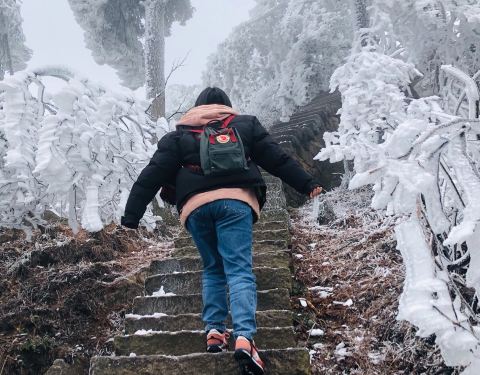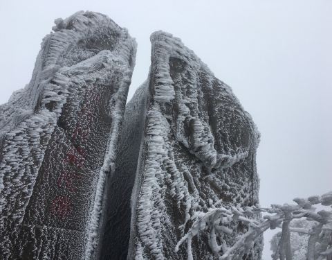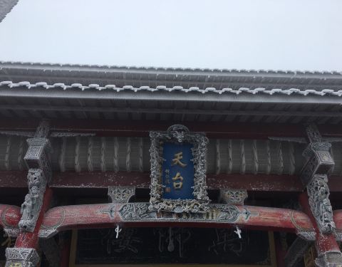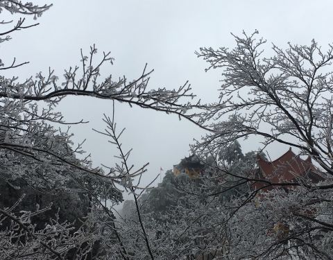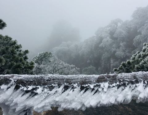 然后天台索道上去的时候直接惊艳到了,这么美的雾淞景观,虽然抱着小孩,加上冰冻路滑,还好买了钉鞋...去的时候正好当晚遇冷空气,然后天台索道上去的时候直接惊艳到了,这么美的雾淞景观,虽然抱着小孩,加上冰冻路滑,还好买了钉鞋套,立马如履平底,登上的天台寺,不留遗憾