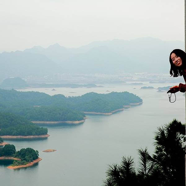 在黄山尖登临山巅,向下俯瞰,九十多个岛屿尽收眼底。臭美发张自己的照片(✿◡‿◡)在黄山尖登临山巅,向下俯瞰,九十多个岛屿尽收眼底