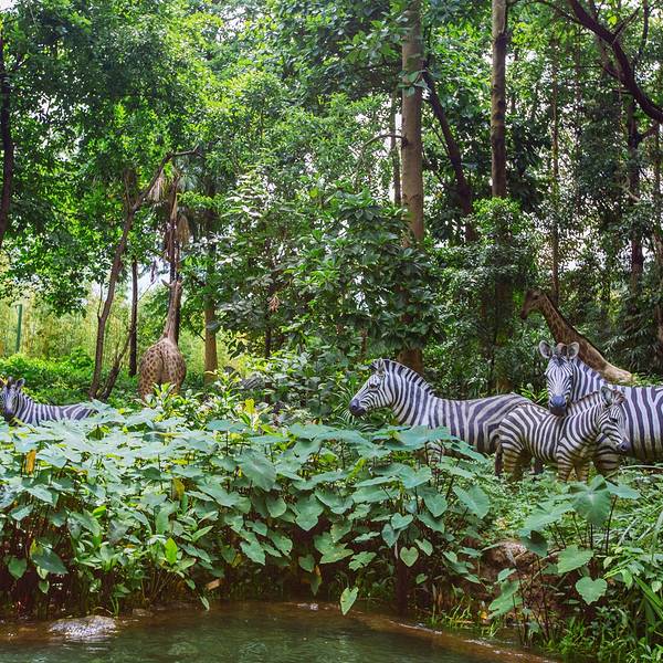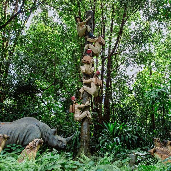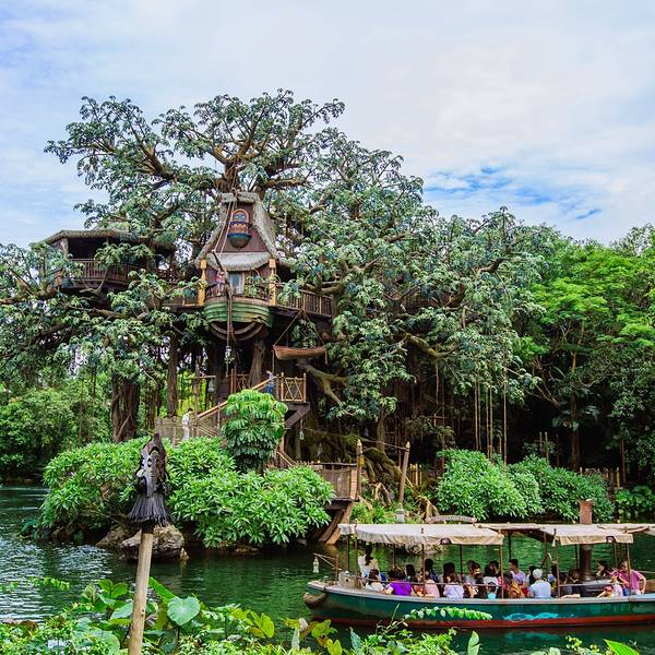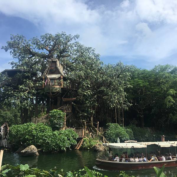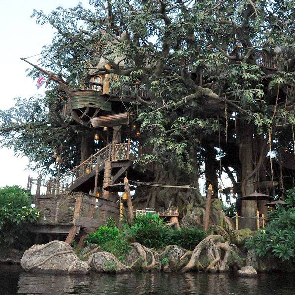 22.历奇喷水池——主题景观。白天版的树屋,讲解员会带领乘客跟岸上的人打招呼互动,太有爱夜晚版的树屋,其实大大小小搭在树上的房子,我们都多少去过,但只有迪士尼能够借泰山家,完完全全还原出大家想象中的树屋样子拍一张探险世界的餐厅 展开