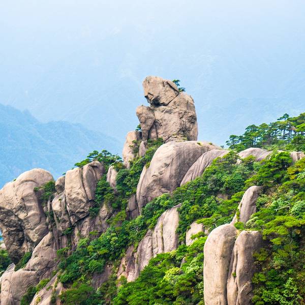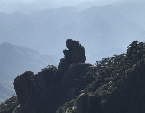 猴王献宝也被称为猴王观海是三清山一座非常奇异的山峰猴王献宝也被称为猴王观海是三清山一座非常奇异的山峰。整座山峰远远望去,就像是一座端坐在山崖上的巨猴,捧起双手在手的当中有一块石头,看上去就像是一个宝贝,真的是惟妙惟肖