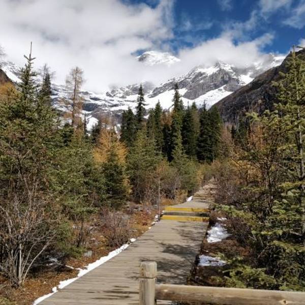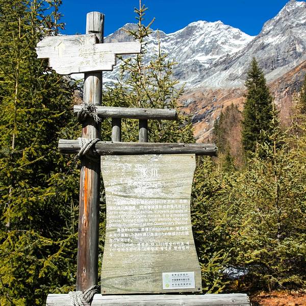 都可以坐观光车到达。这里的牌子介绍了冰川湖泊的作用。正午的太阳。残留的积雪参天的大树美味的烧烤