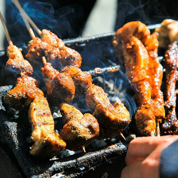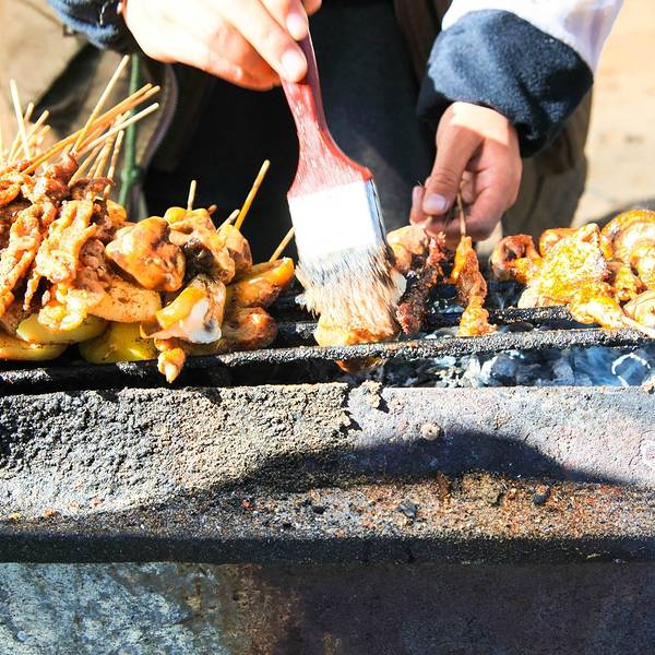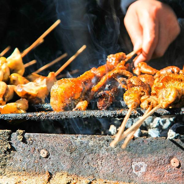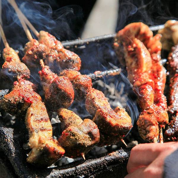 一共有三个烧烤摊,还卖松茸炖萝卜汤,十块钱一碗。不算很贵,味道鲜美