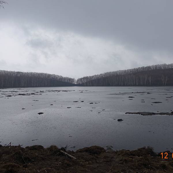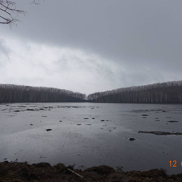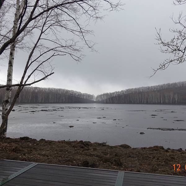 静谧的天池。天池隐秘在树林之间,虽已到5月却豪无绿意,岸边光秃的树枝配上平静的水面,在无人的雨天另有一番凄美。