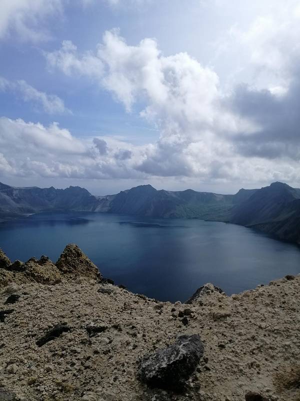 流动的云。以前看云都是在天空中缓慢地飘动,几乎感觉不到它在动。天池上的云却是快速流动的,像是乘N倍的快进节奏,很难跟上它。