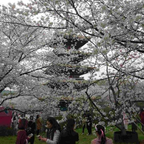 武汉赏樱好去处,每年3-4月花期东湖樱花节期间十分热闹。
