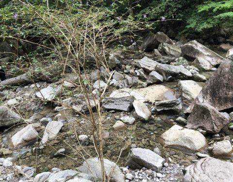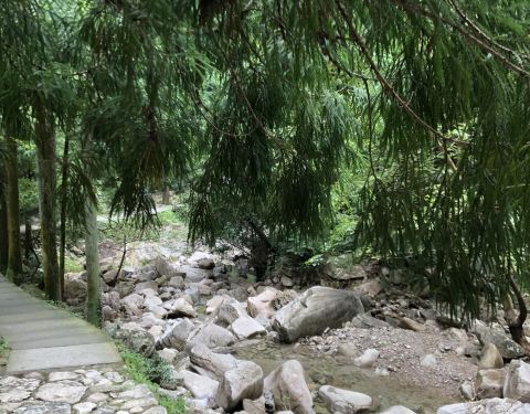 现在水不是很充足,只有从大龙湫瀑布流过来的水不是很多,小溪比较干干的,不水灵