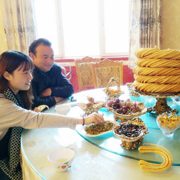 又是一天在路上,去往那拉提的路上,晚上找吃的,去了一家民族餐厅,老板是哈萨克人,正在过他们的古尔邦节又是一天在路上,去往那拉提的路上,晚上找吃的,去了一家民族餐厅,老板是哈萨克人,正在过他们的古尔邦节,他们热情的叫我们坐下来吃,晚上去一家川菜馆第一次吃了大盘鸡。