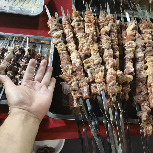 面肺,没什么感觉,算不上好吃不好吃,但还是要尝尝。羊蹄,还是在喀什吃的味道好。儿子给买的冰激凌🥰晚上住在伊宁,导航时发现一个伊宁县,一个伊宁市,是起不出名字了吗?晚上到最大的丝路之光夜市逛逛,因为怕不好停车就打车去了。卡瓦斯羊蹄,还是在喀什吃的味道好。面肺,没什么感觉,算不上好吃不好吃,但还...晚上住在伊宁,导航时发现一个伊宁县,一个伊宁市,是起不出名字了吗?晚上到最大的丝路之光夜市逛逛,因为怕不好停车就打车去了。卡瓦斯羊蹄,还是在喀什吃的味道好。面肺,没什么感觉,算不上好吃不好吃,但还是要尝尝儿子给买的冰激凌🥰这羊肉串一串就饱了。 展开