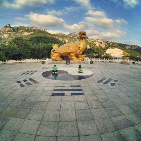 九月的罗山,秋高气爽。一进大门不久,那个巨大的神鳌在蓝天白云下尤为壮观。天气很好,适合踏青。顺着台阶向上,风景宜人,信手拍几张照片,就很有感觉。